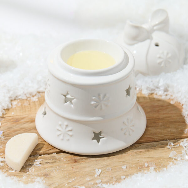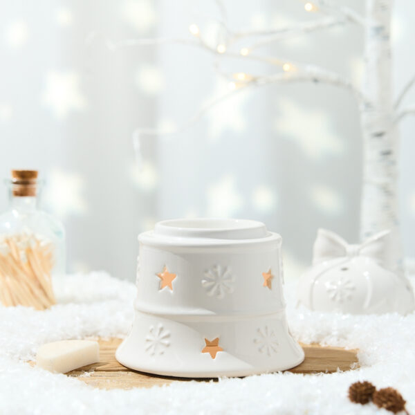 Designed to capture the magic of the season, this elegant ceramic burner is perfect for cosy winter nights. Simply add your favourite wax melt and let your home fill with warm, inviting aromas while the soft glow of candlelight shines through the delicate star and snowflake cut-outs.