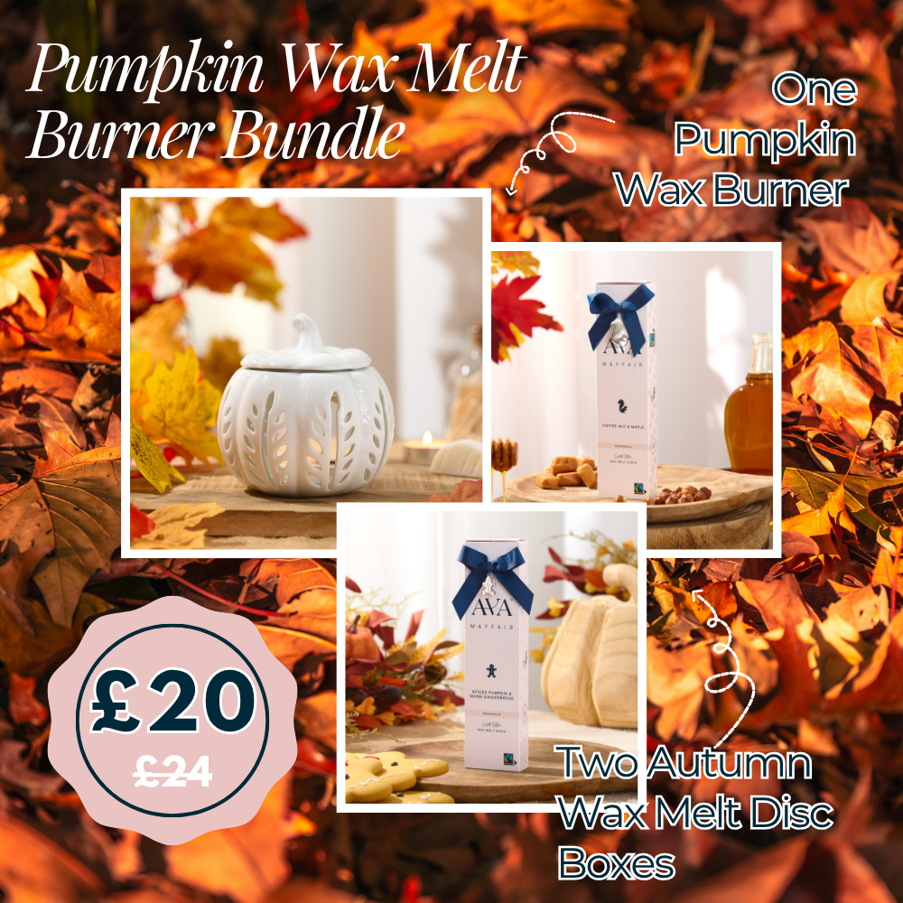 This exclusive bundle combines two indulgent autumn wax melt scents with our elegant Pumpkin Wax Melt Burner, creating a stunning centrepiece for your cosy home décor. Whether you’re treating yourself or searching for the perfect seasonal gift, this bundle brings the essence of autumn straight into your home.