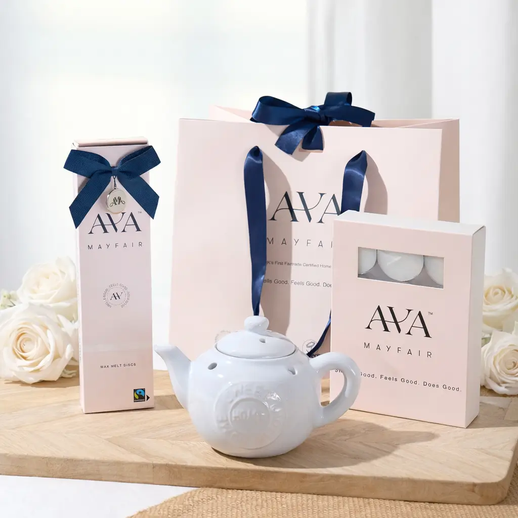 Treat her to the perfect Mother’s Day Bundle from Ava Mayfair. Featuring a charming teapot burner, tea lights, a handpicked 4-disc wax melt box of your choice, and a luxury gift bag – all beautifully presented for just £20.